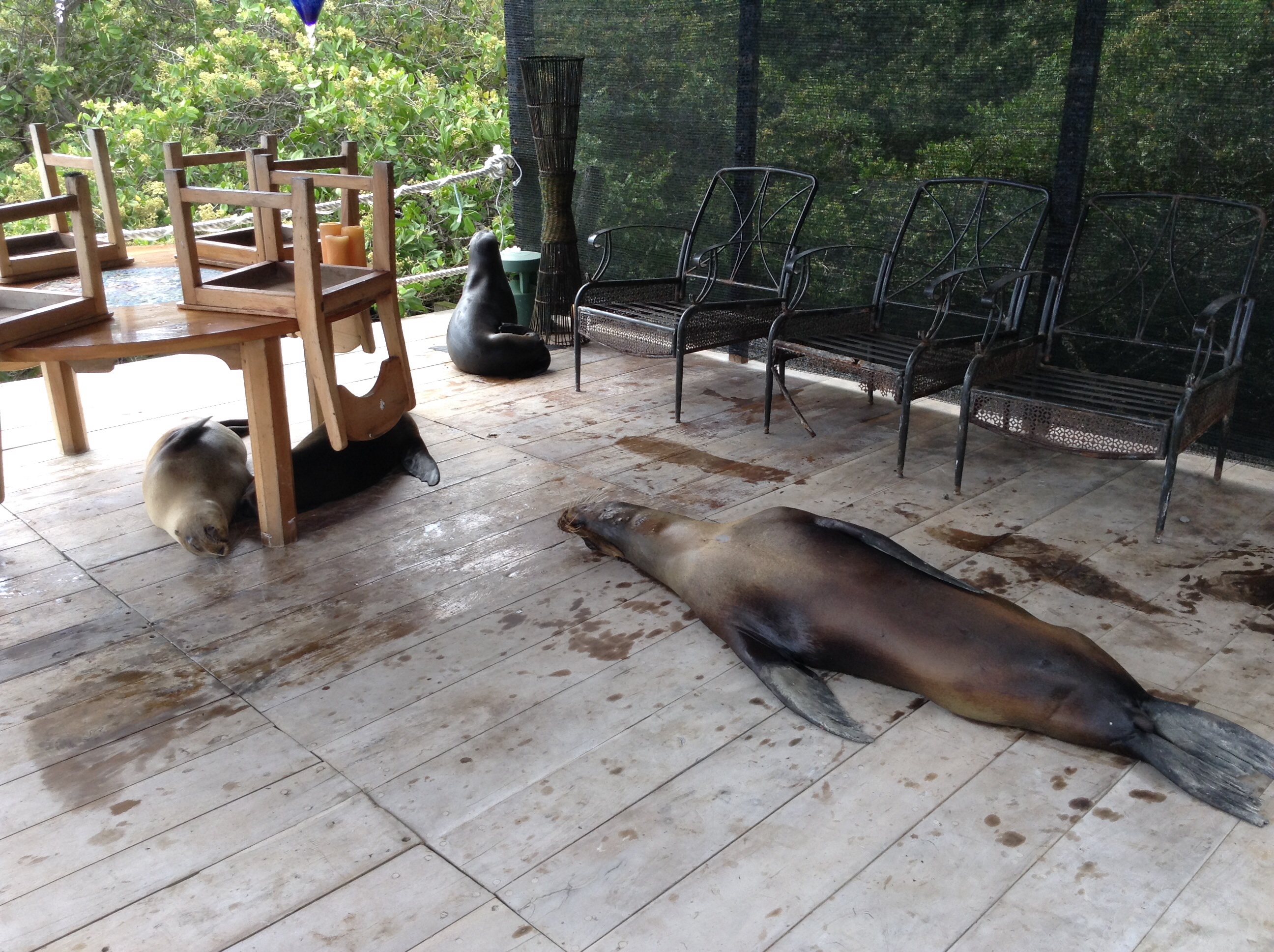 宿泊しているレッドマングローブホテルのテラスにはアシカがやたら寝そべっております。