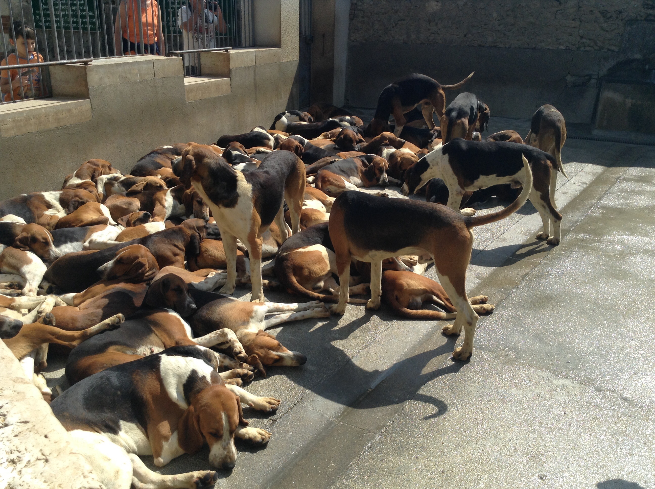 行って見るとビックリ、何十頭という猟犬が山のように重なって寝ている。