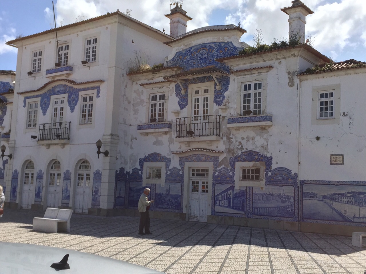 この町の特徴であるタイル貼りの壁。 この駅舎を見に日本人の観光客がいました。